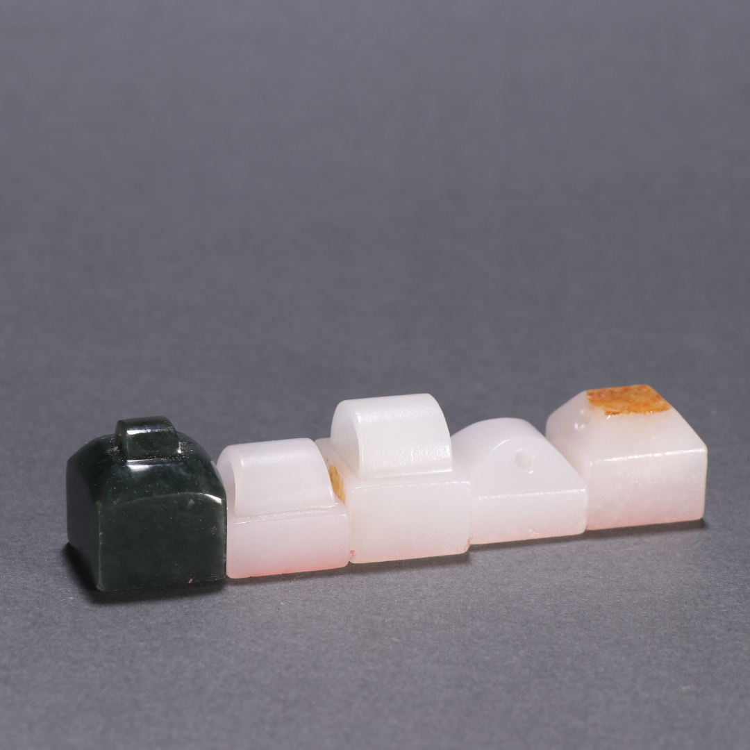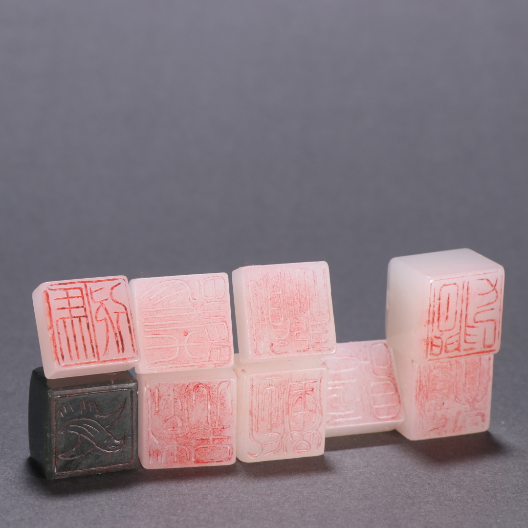 ◆御泓軒◆『清朝時代 和田玉彫 印章セット 9点 箱付』極細工・古賞物・中国古玩・中国古美術