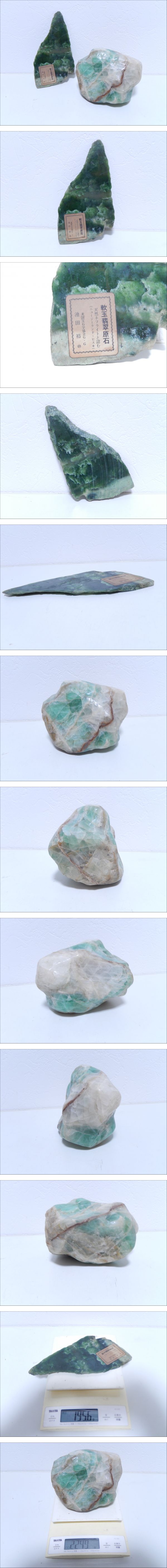 | 【管SH0640】5000円~ 天然 翡翠 原石 軟玉翡翠 ニュージーランド産 他 2点 ネフライト ヒスイ | ||