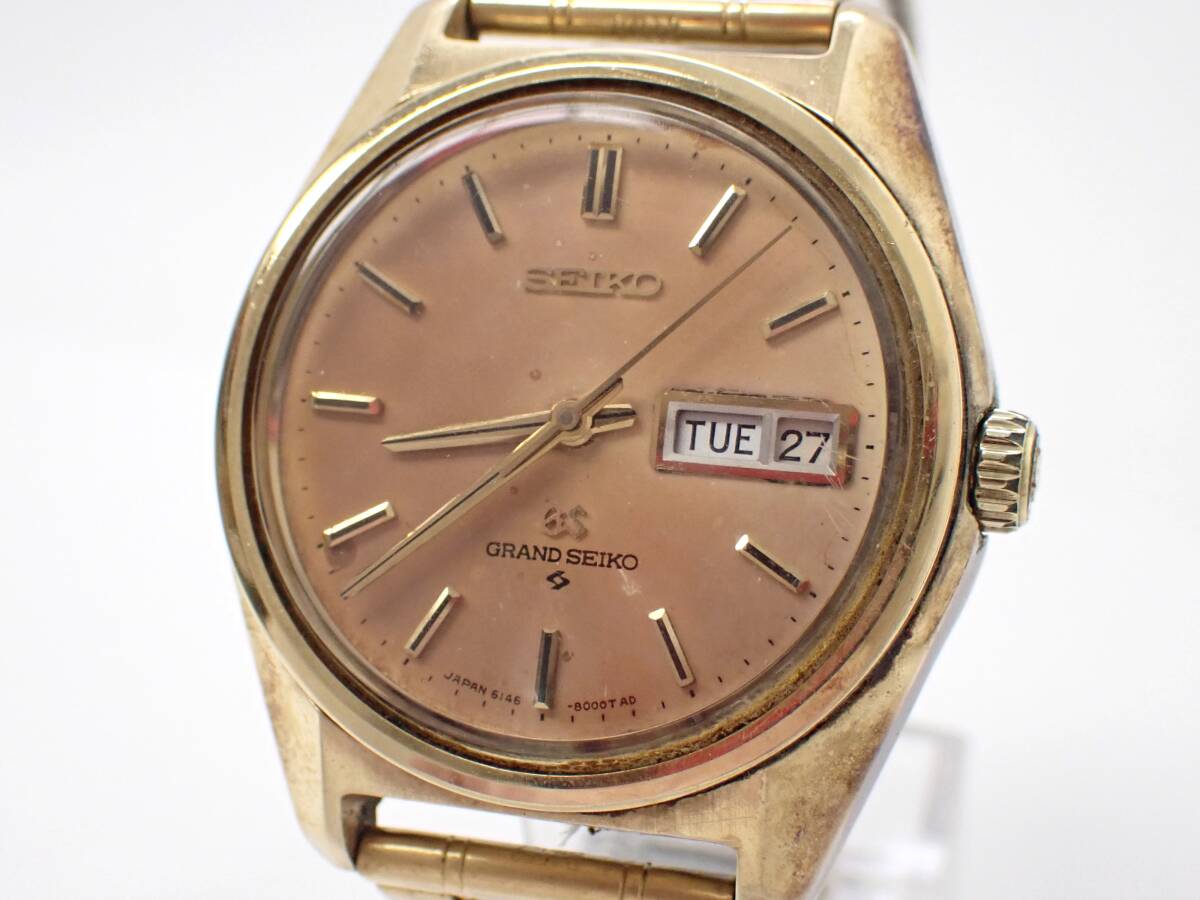 稼働品 1円~☆SEIKO セイコー AT/自動巻き メンズ腕時計 GS グランドセイコー 6146-8000 ゴールド文字盤 デイデイト/DA0891-48153.10/27 收藏