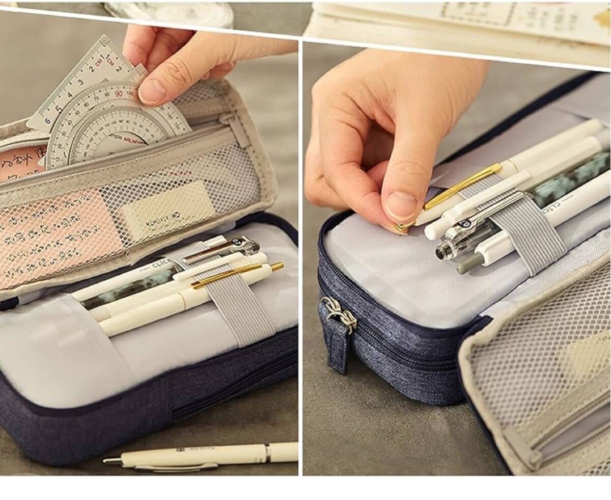 筆箱 大容量 ペンケース 多機能 ポーチ ペンポーチ 帆布 小学生 中学生 高校生 大学生 男の子 女の子入学祝い立つタイプ (ネイビー) 收藏