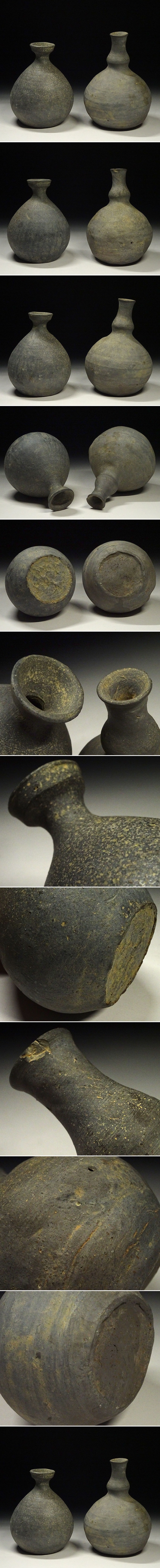 緑屋h■ 朝鮮美術 高麗 新羅 徳利 2点 朝鮮古陶 時代物 i9/10-6461/30-4#80 收藏