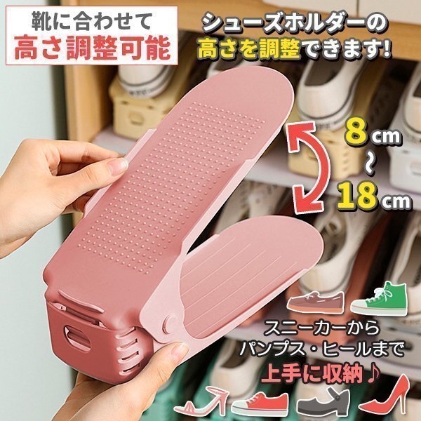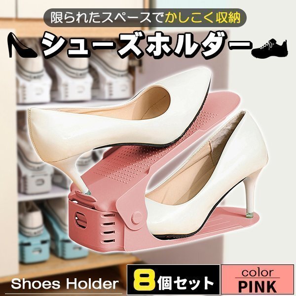 シューズホルダー 靴収納 8足分 スニーカー収納 ピンク 玄関収納 くつホルダー 靴ホルダー 靴 収納 靴箱整理 靴 靴箱 下駄箱 玄関 スリム 收藏
