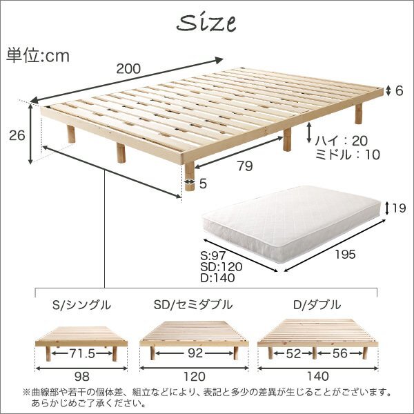 | 今回の出品でお求めいただける商品は 3段階高さ調節 脚付きすのこベッド【リリッタ】 (ポケットコイルロールマットレス付き) ダブル です。宜しくお願いします。 |