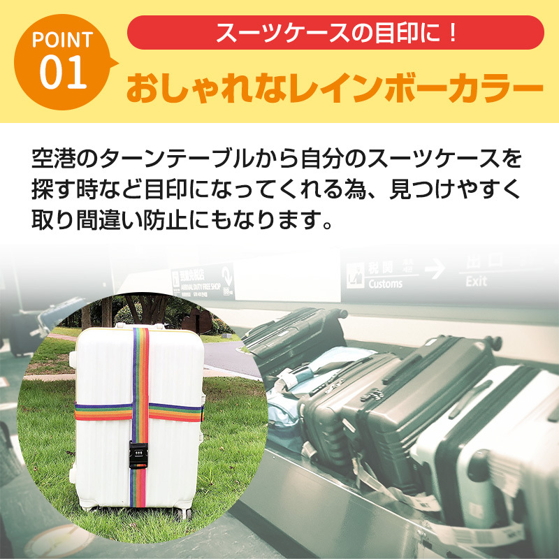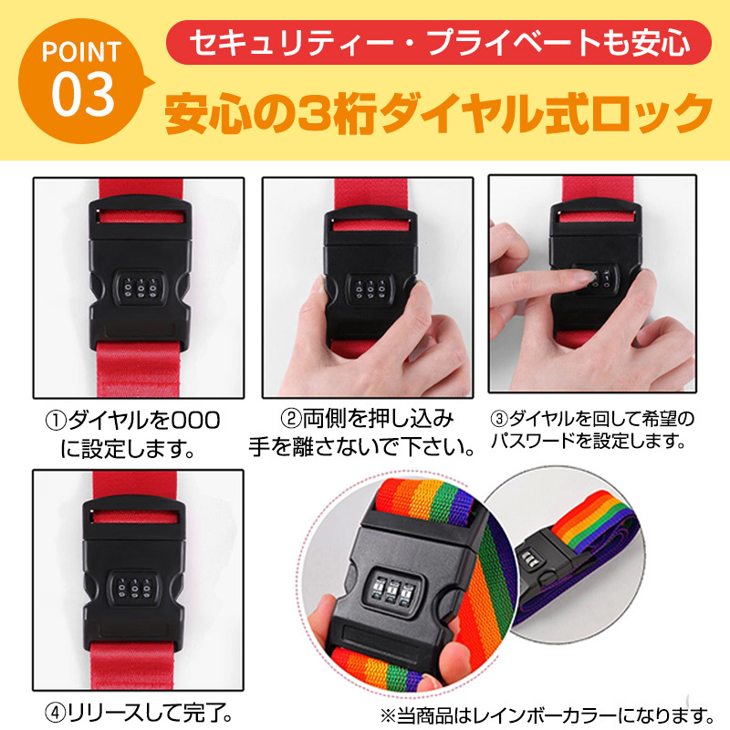 | スーツケースベルト バンド レインボー ダイヤルロック 2本 固定ベルト トランクベルト キャリーケース 荷物 旅行 防犯 盗難防止 |