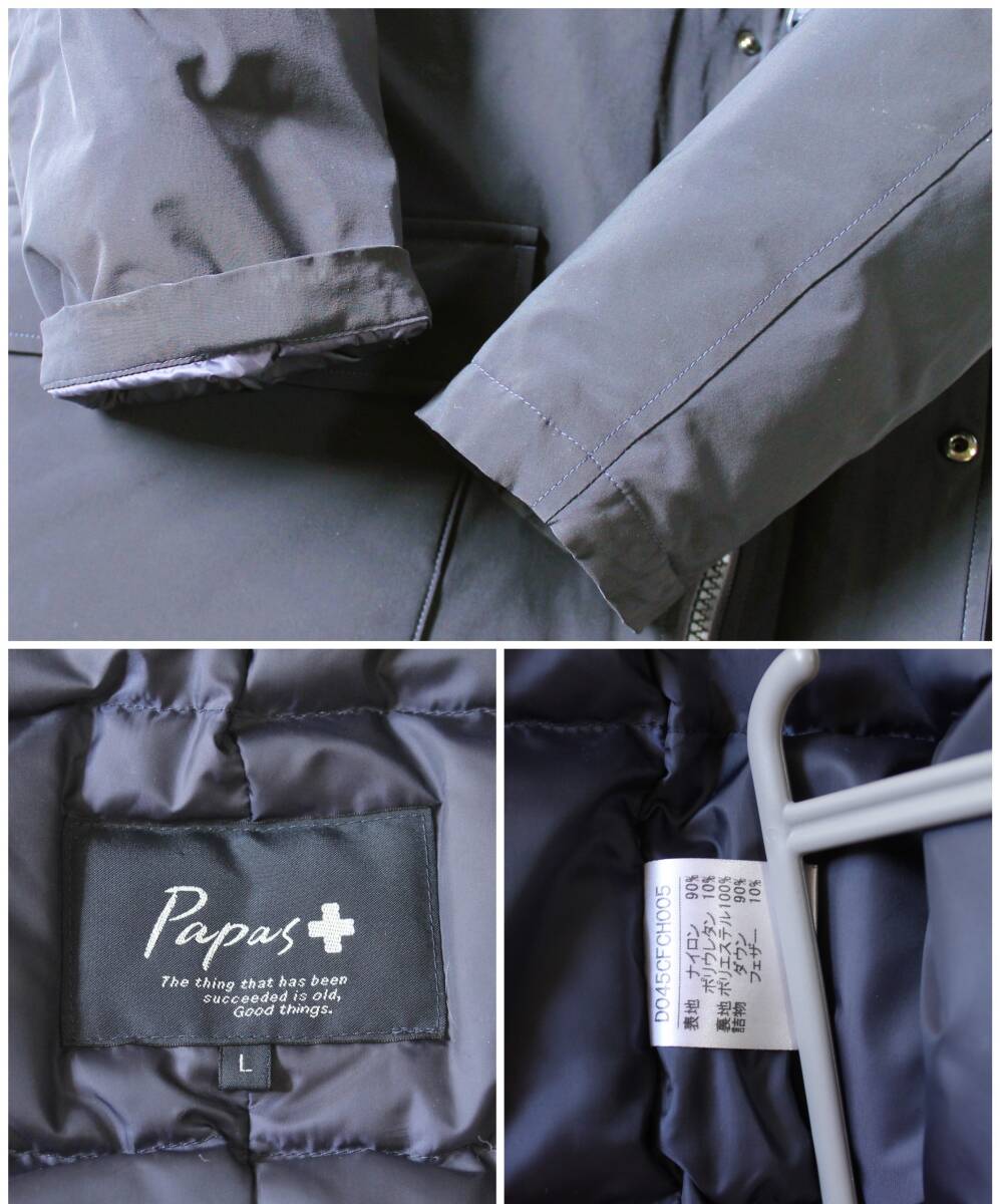 美品/9.2万円税別』papas パパスプラス フード付きダウンハーフコート (ナイロンライクラ2WAYストレッチタフタ) ハイクオリティなアウター 收藏