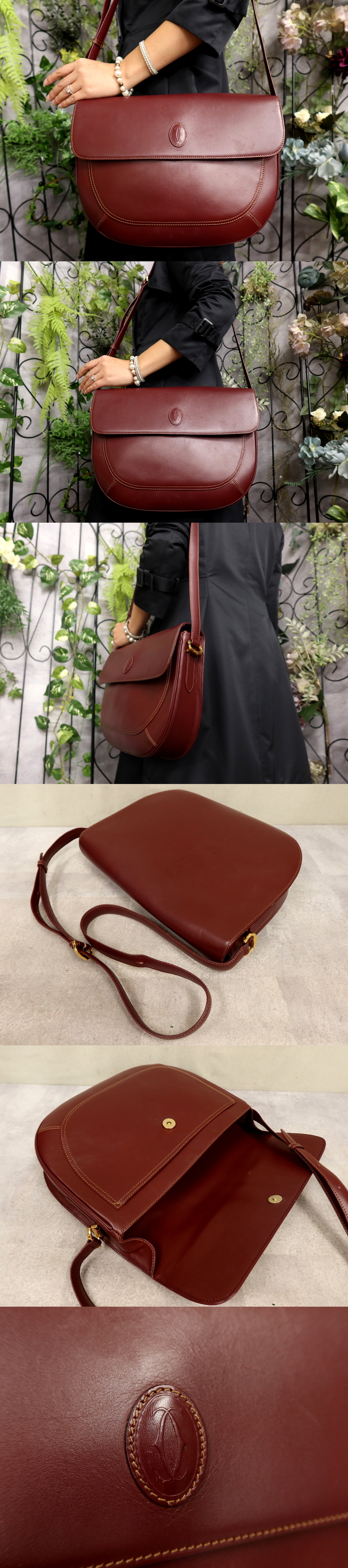 ●超美品●Cartier カルティエ●マスト●カーフ レザー 本革●ショルダー バッグ●ボルドー●ゴールド金具●ヴィンテージ●B5●Js61812 收藏