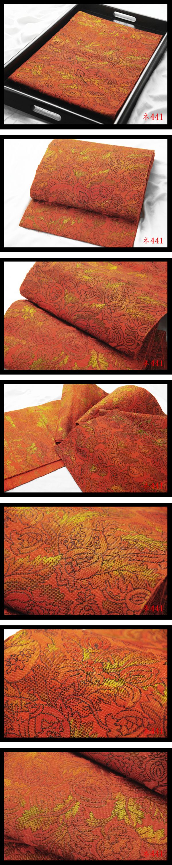 【ネ441】厳選美品 手織 更紗紋 赤橙色地 気品豊かに 正絹高級美術開き名古屋帯 ◇検◇簪着物袋帯名古屋帯帯締め 收藏