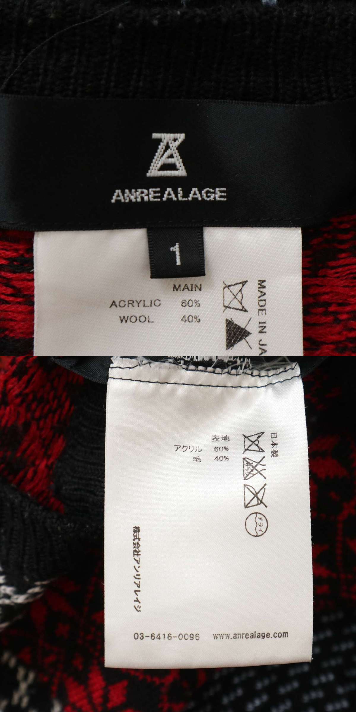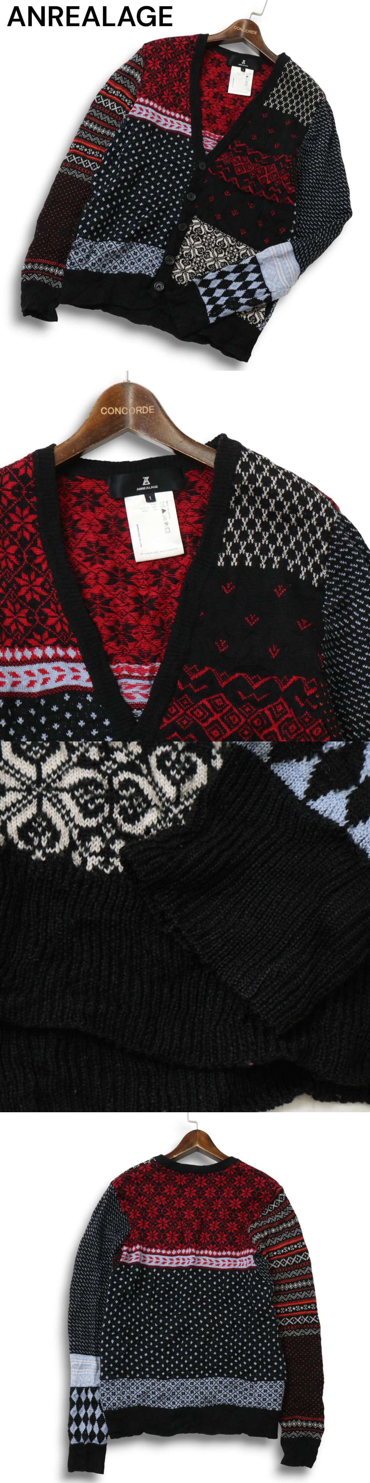 ANREALAGE アンリアレイジ 秋冬 ウール混★ 切替 ノルディック カーディガン 羽織り Sz.1 メンズ 日本製 收藏