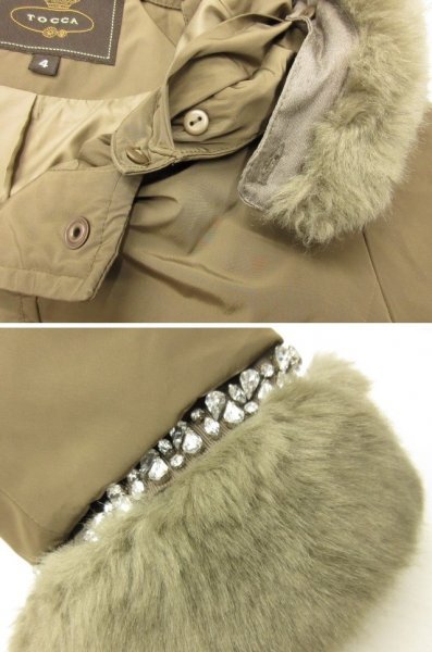 取外しができる袖のビジューがあしらわれたファーが華やかさを添えてくれる