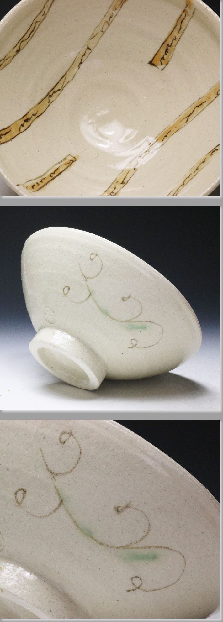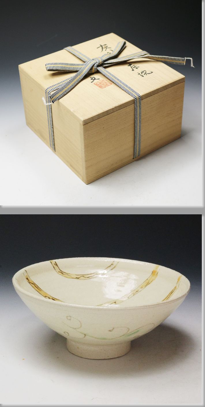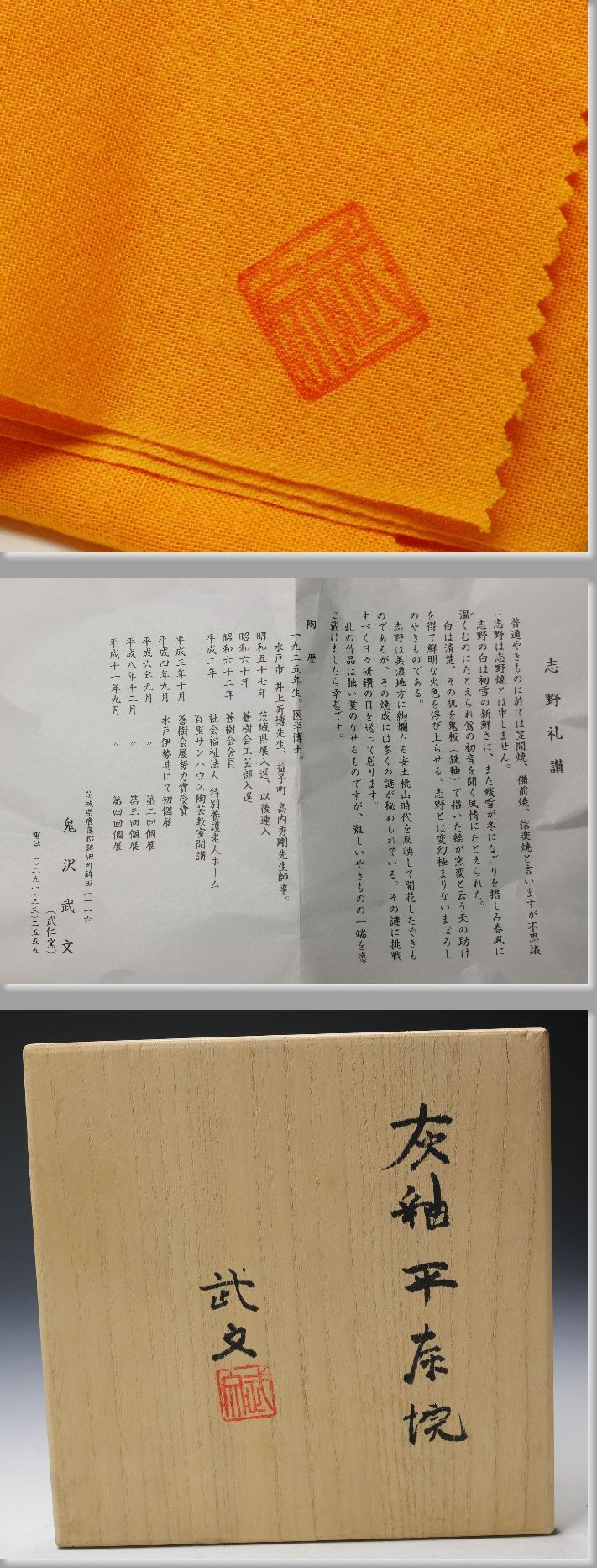 ■■ 茶道具 志野焼 鬼沢武文 灰釉平茶碗 四方桟共箱・共布 ■■