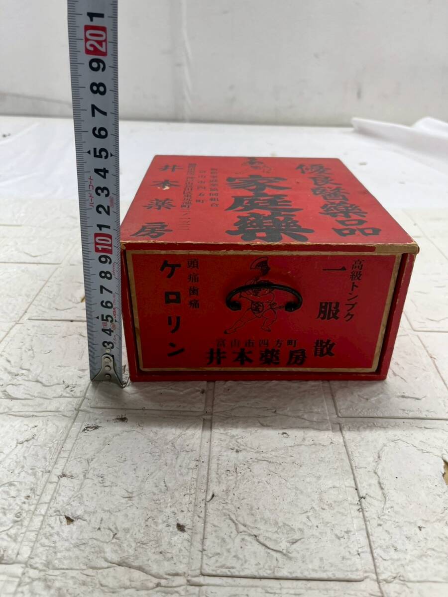 ★【在庫処分価格】富山市四方町井本薬房 薬箱 置薬 赤箱 昭和レトロ アンティーク 小物入れ ケロリン 一服散☆T11-509J 收藏