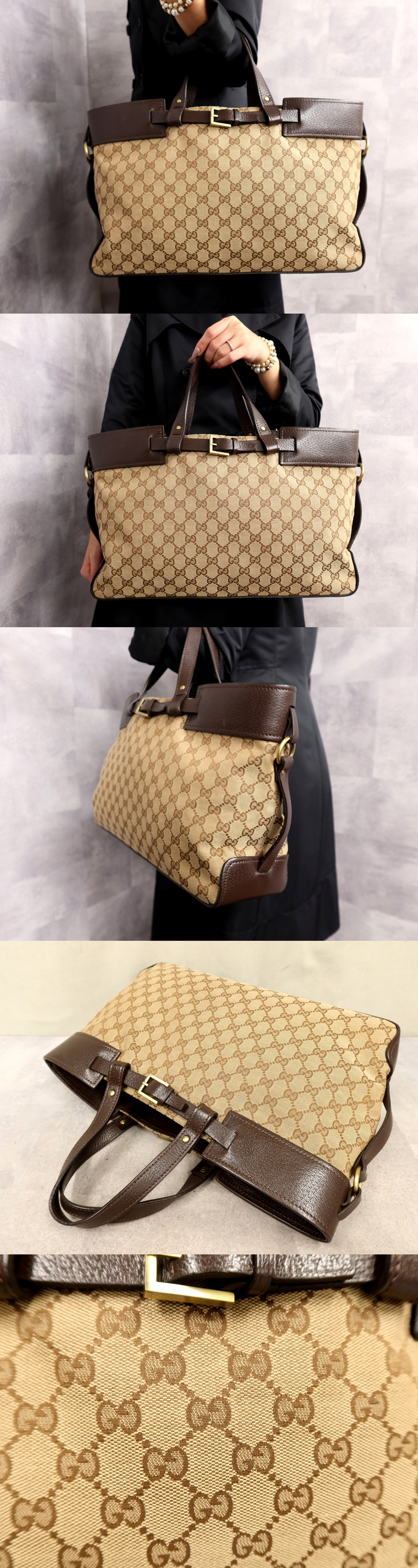 ●超美品●GUCCI グッチ●GGキャンバス カーフ レザー 本革●トート ハンド バッグ●ブラウン ベージュ●G金具●イタリア製●A4●Js62470 收藏