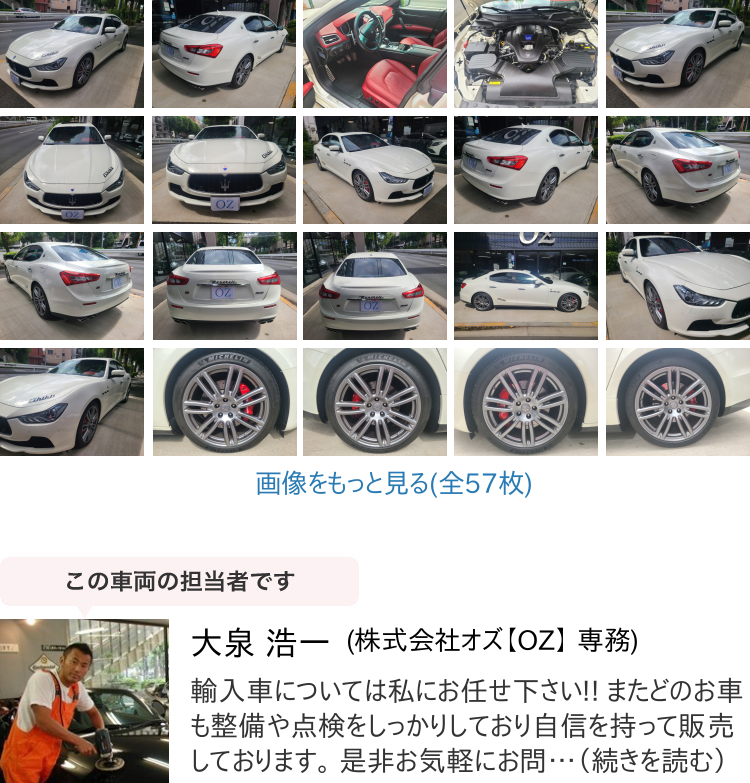 GOO鑑定書付 2015年 マセラティ ギブリSーQ4が入庫しました。デイラー車 左ハンドル 8AT 車検令和8年7月 ホワイトビアンコ 赤革シート 純正ナビTVETCバックカメラ CD GPSレーダー Fドライブレコーダー リヤ3面スモークフィルム カーボンピラーカバー 245/40ー20 285/35ー20(ミシュラン パイロットスポーツ4S)前後シートヒーター 電動リヤカーテン カーテシーライト付 ボディーガラスコーティング施工車 タイヤ、前後ブレーキパッド、バッテリー交換済 保証書 取説 スペアキー 走行7.400キロ 今回は、400万にて御提供です。