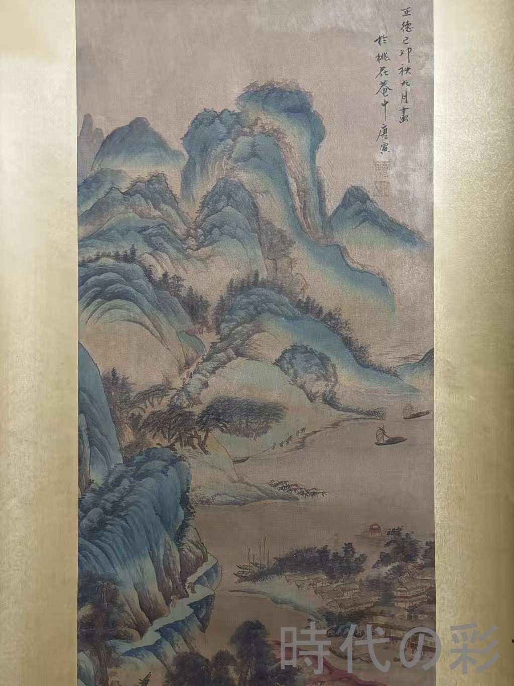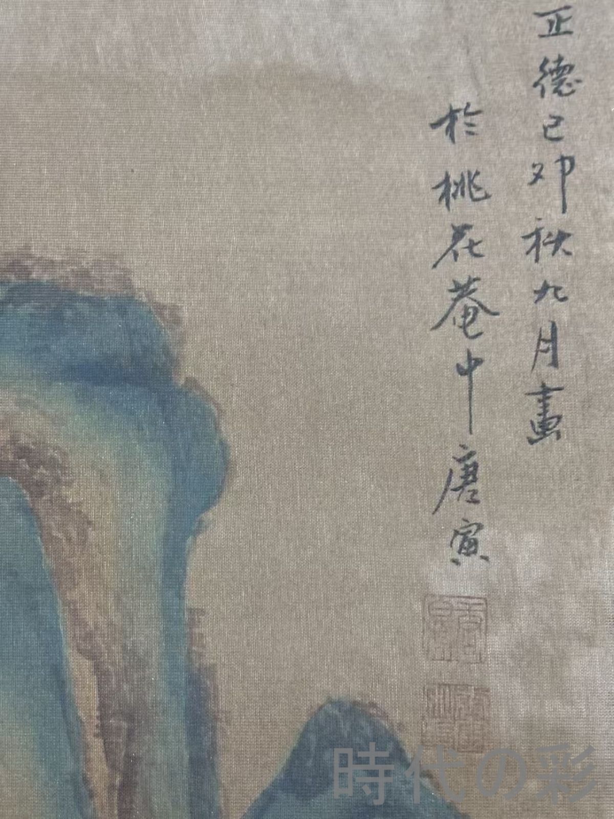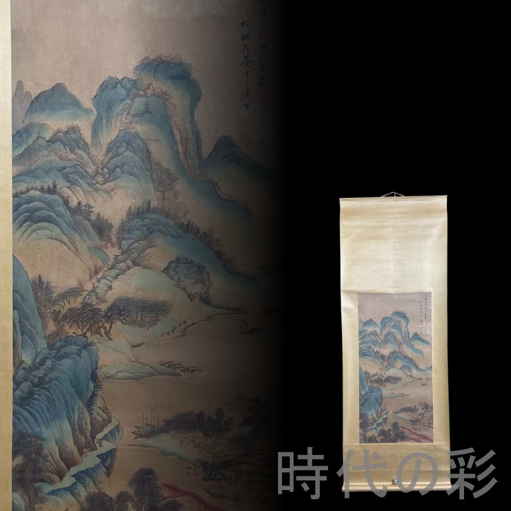 【美の継承】中国古美術.旧蔵.唐寅印款.山水画.中堂画.純手絵.肉筆.三尺絹本.書房賞物 .書道品.古書畫.骨董美術品.掛軸.R07111702 收藏