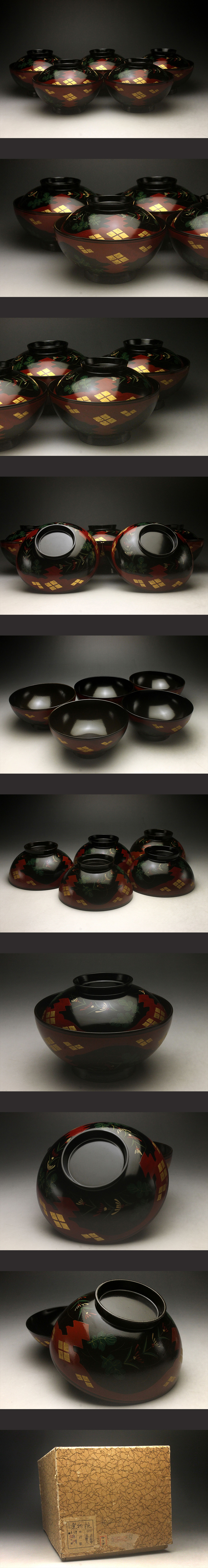 【余韻】 美品漆器 正法寺蒔絵煮物椀 5客★懐石道具 料亭<同梱可> 收藏
