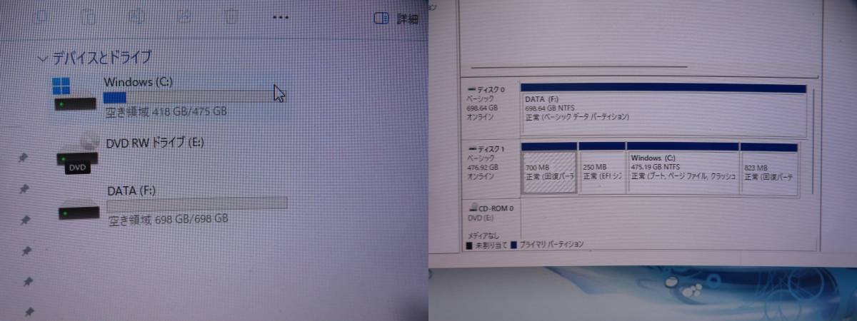 ◆ Windows11 DtoDリカバリー領域有ります。またWin11のメニューよりUSB等へOS再インストールバックアップメディア作成可能です 。
