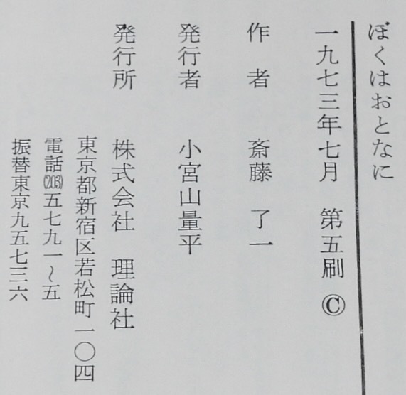 ジュニア・ライブラリー ぼくはおとなに 斎藤了一 理論社 1973年7月第5刷 A5判ハードカバー.
