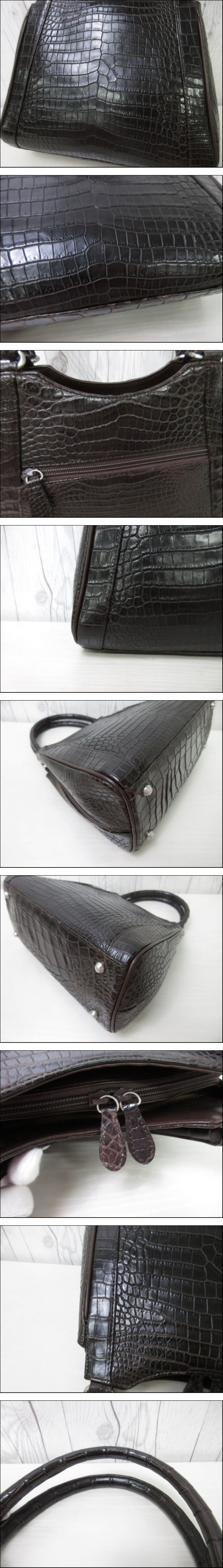 | 極美品 マット クロコダイル ハンドバッグ バッグ 茶 92712 | ||