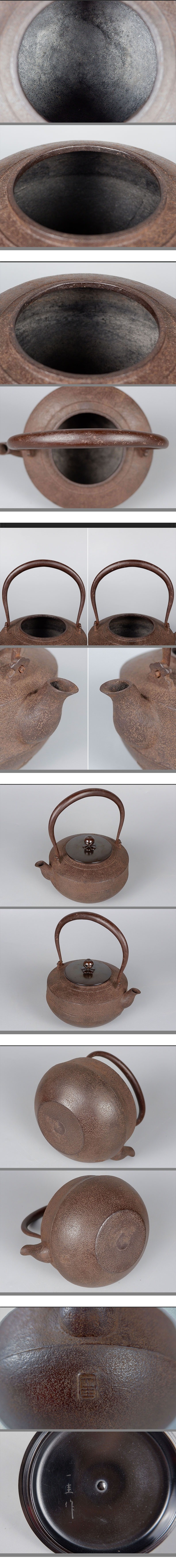 【MKA】人間国宝 角谷一圭 流水地紋独楽形鉄瓶 共箱 茶道具 瓶掛 煎茶 真作保証 收藏