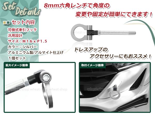 トヨタ スバル M16×P1.5 シルバー 牽引フック 折りたたみ式 けん引フック レスキュー トーイングフック アルミ 脱着式 可倒式 軽量 收藏