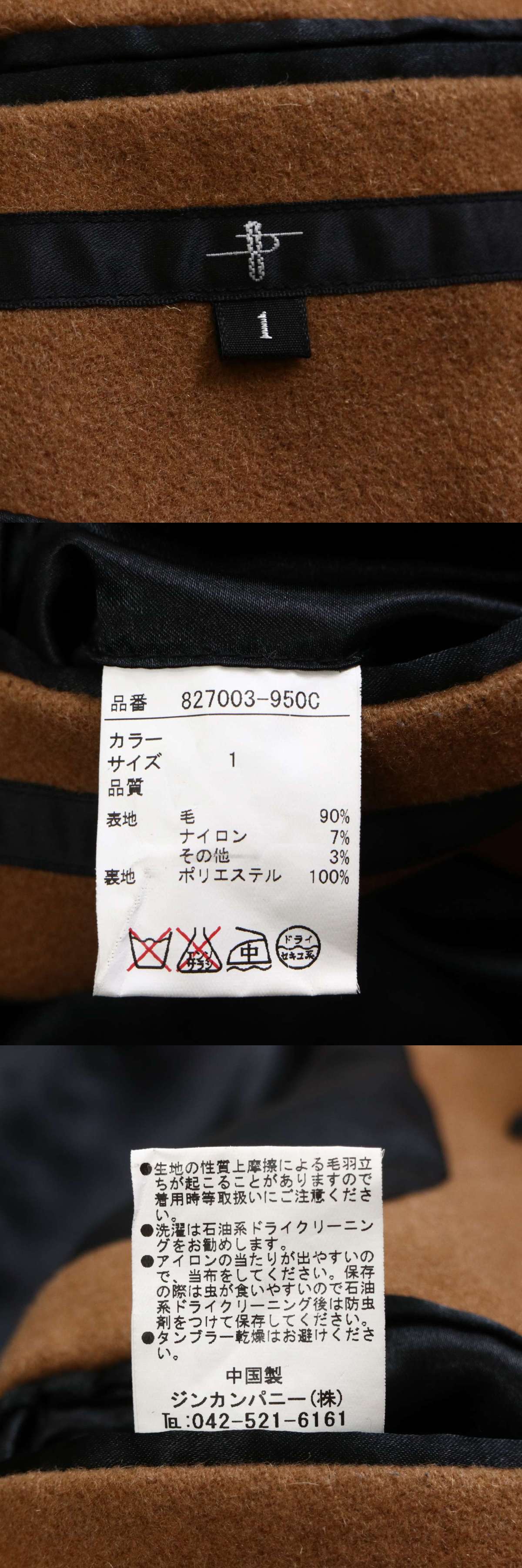 NOID. ノーアイディー 秋冬 ウール★ ピーコート P コート ショート Sz.1 メンズ キャメル 收藏