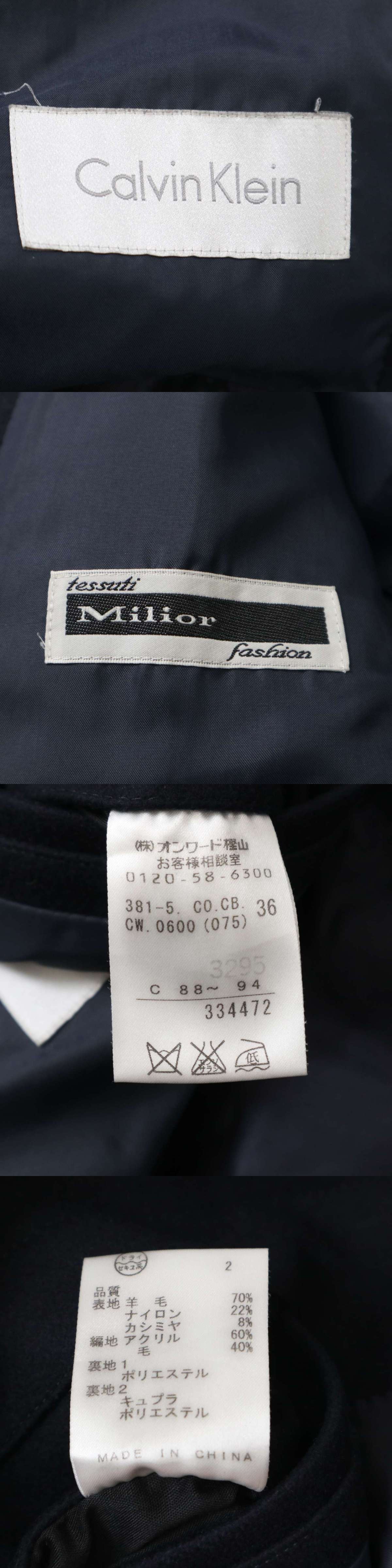 高級★ Calvin Klein カルバンクライン 秋冬 Milior ウール カシミヤ混★ ステンカラー コート Sz.36 メンズ 紺 ネイビー 收藏