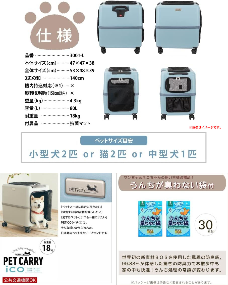 E1200YO ◆0119【アウトレット品】ペットキャリー Lサイズ ペチコ 3001-L キャリーケース 犬用 猫用 未使用 ペット用品 收藏