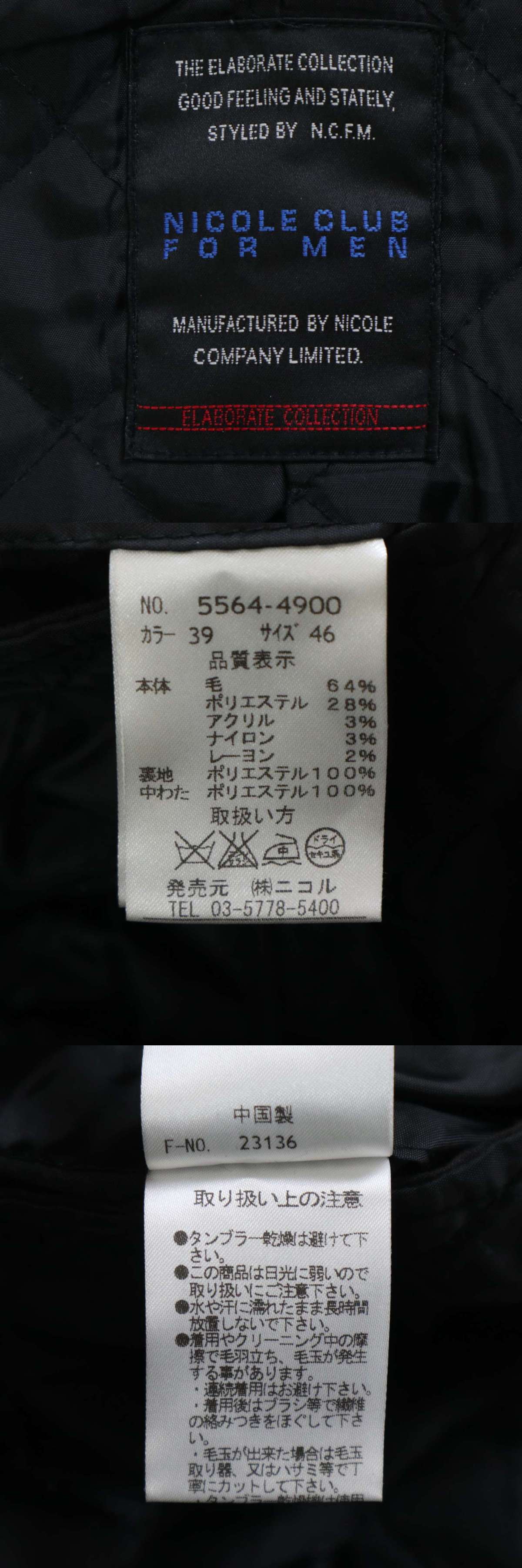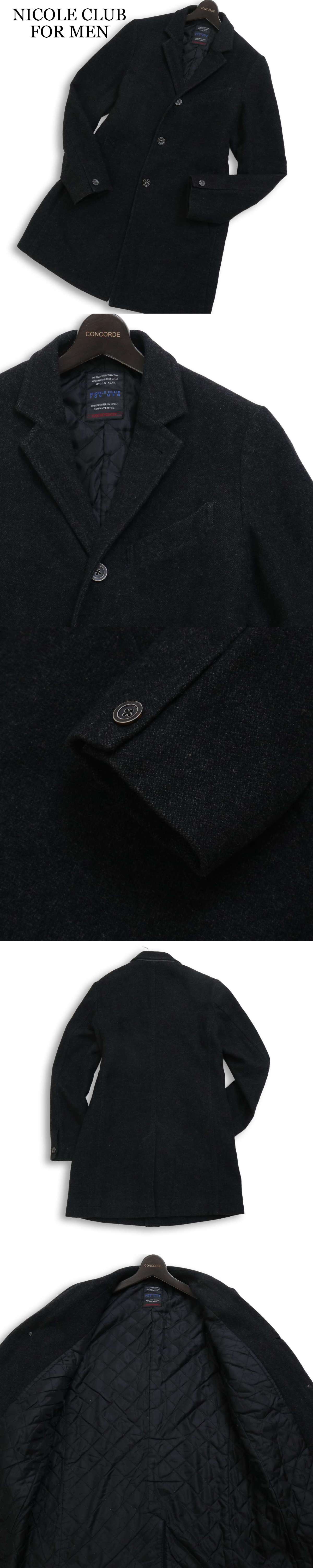 NICOLE CLUB FOR MEN ニコルクラブ フォーメン 秋冬★ ウール 中綿 チェスター コート Sz.46 メンズ グレー 收藏