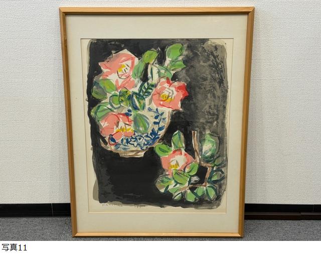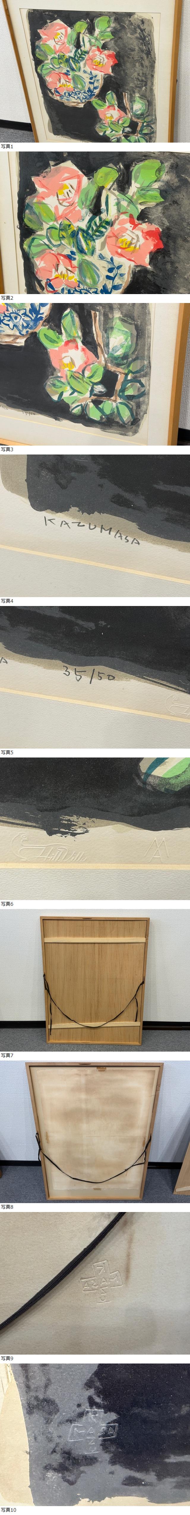 | 真作 中川一政作 リトグラフ 「椿」 35/50 額サイズ(約)57cm×75.5cm |