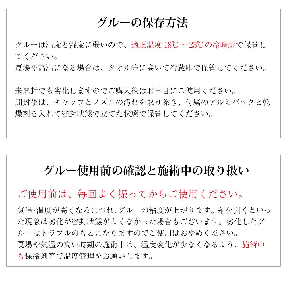 3.グルーが皮膚に付かないようにご注意願います。