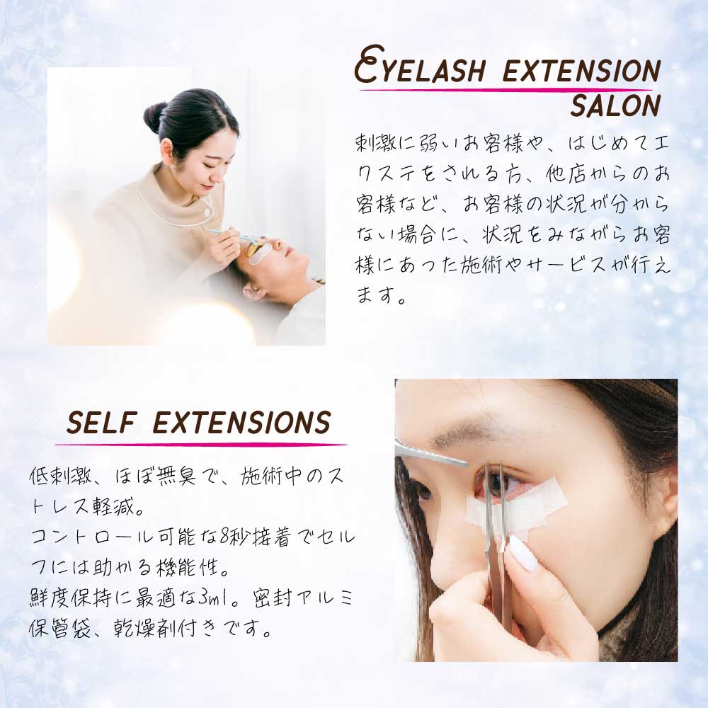 2.施術途中と施術後にエアーポンプでよく乾かすと刺激を避ける事が出来ます。