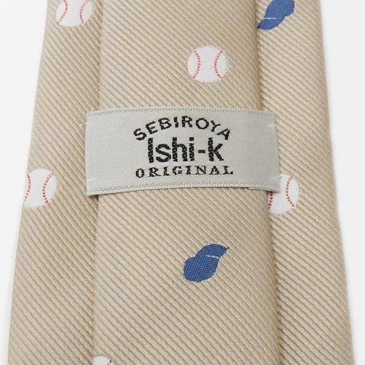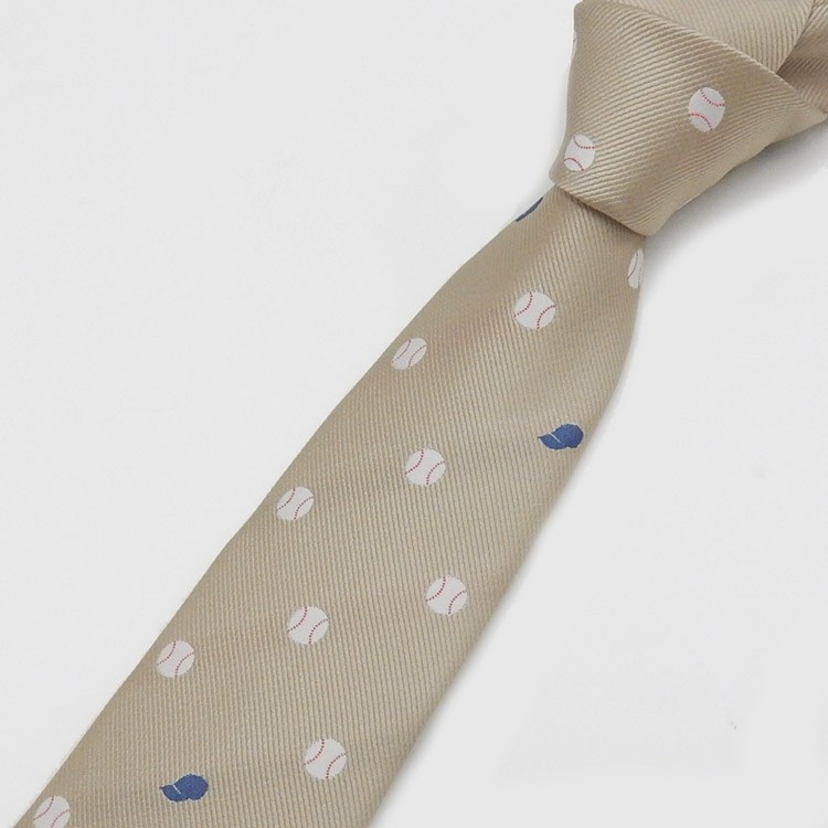 スポーツ応援タイ 野球 ベージュ×紺×(白×赤) コインドット風 日本製ネクタイ 甲州織 洗濯機OK メール便OK NSP52-F 收藏