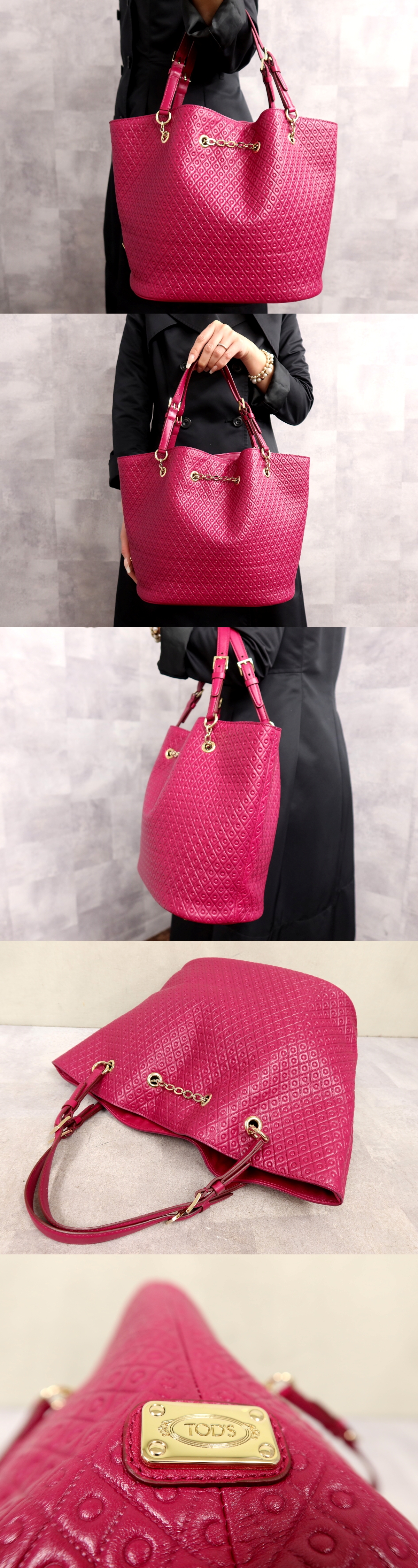 ●超美品●TODS トッズ●カーフ レザー 本革●巾着 トート バッグ●フューシャピンク●ゴールド金具●腕掛け●B5 収納 かばん●Js65703 收藏