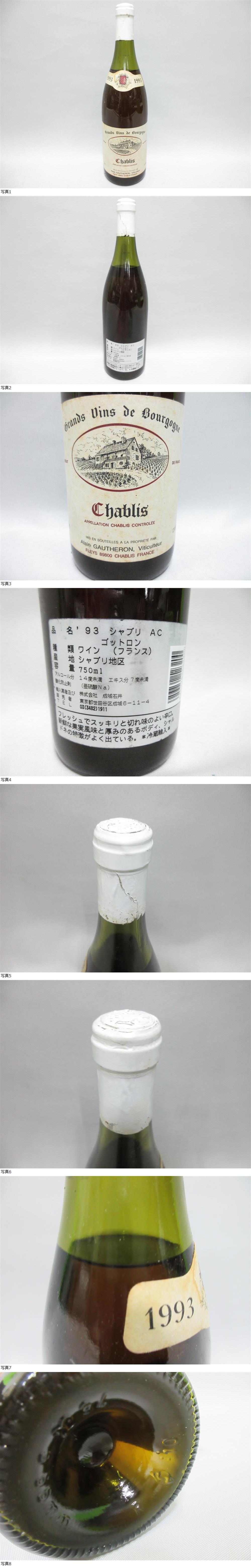 26324 酒祭 洋酒祭 シャブリ AC ゴットン 750ml 14% 未開栓 古酒 ワイン Chablis Gauthieron 1993 ヴィンテージワイン 收藏