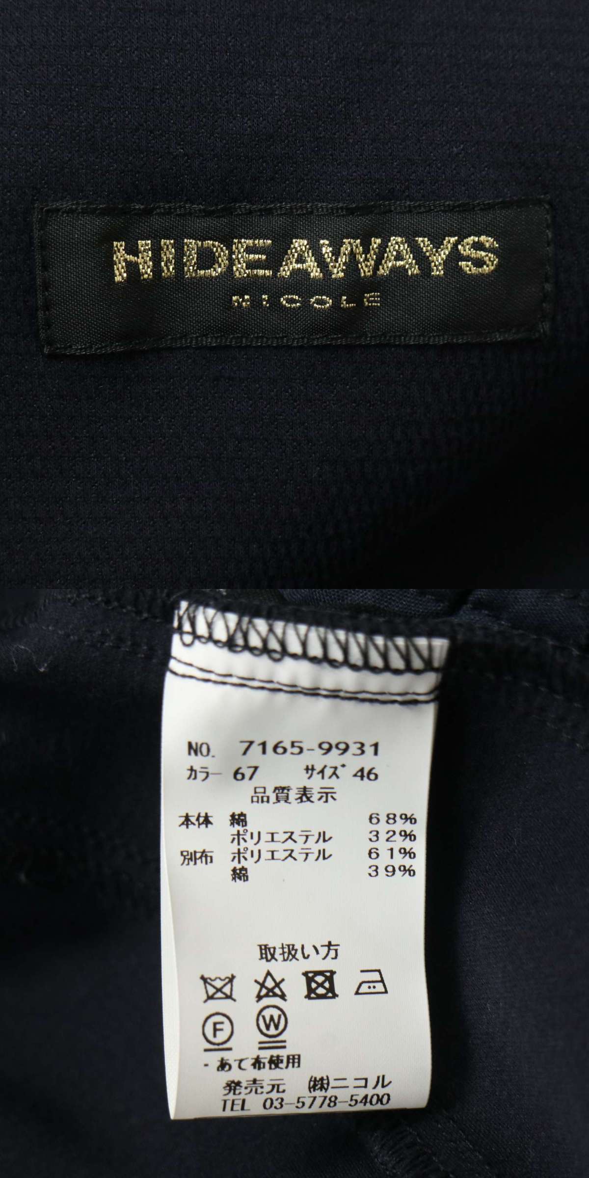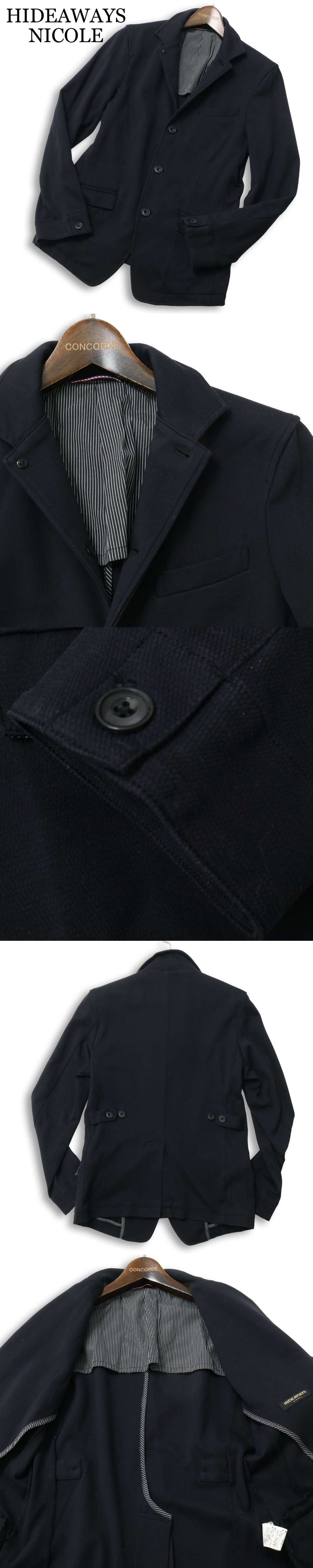 HIDEAWAYS NICOLE ハイダウェイ ニコル 通年 背抜き 襟ワイヤー★ スリム ジャケット Sz.46 メンズ ネイビー 收藏