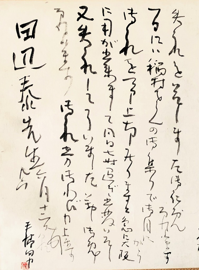 ★【模写/平櫛田中】 明治~昭和 岡山県 彫刻家 古書 古文書 消息文 書簡 《宛先 田辺泰》 『箱書・周魚道人泰』 紙本★ 收藏