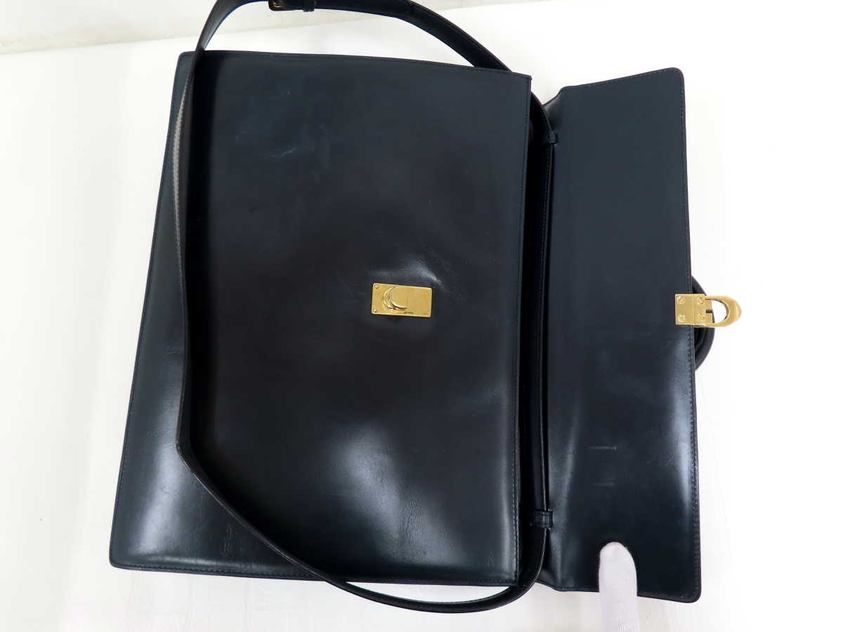 ◆美品◆LOEWE ロエベ◆アナグラム◆カーフ レザー 本革◆2way ハンド ショルダー バッグ◆ネイビー ゴールド金具◆ヴィンテージ◆A16113 收藏