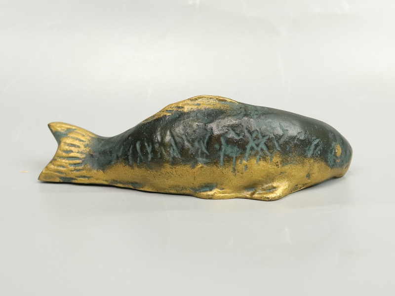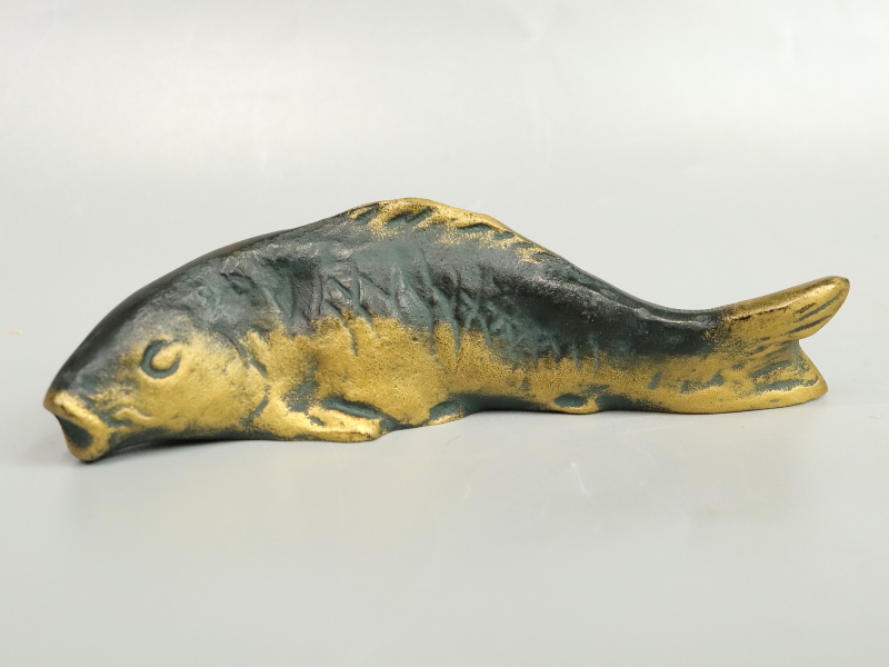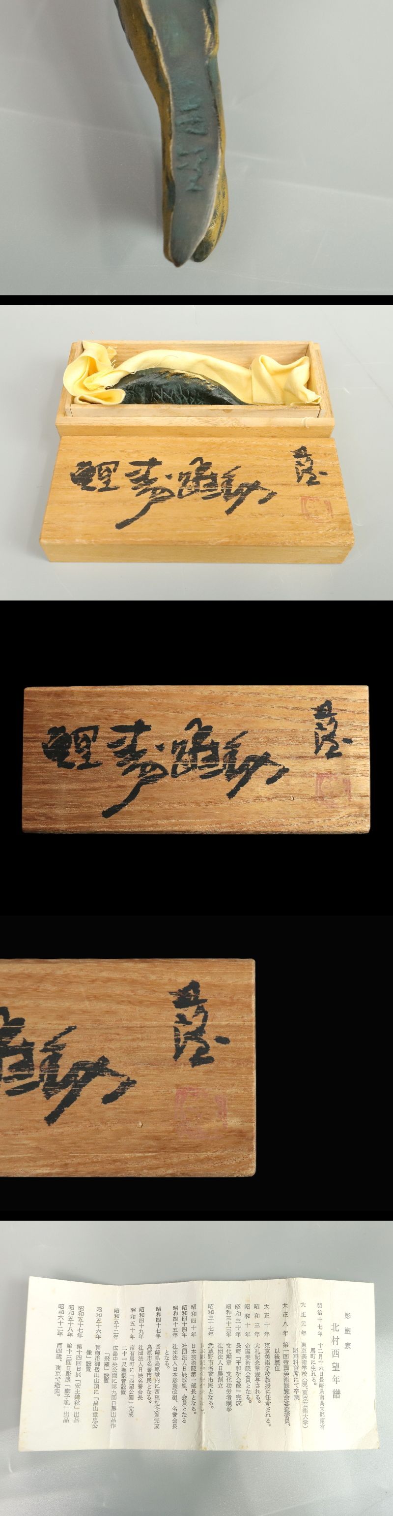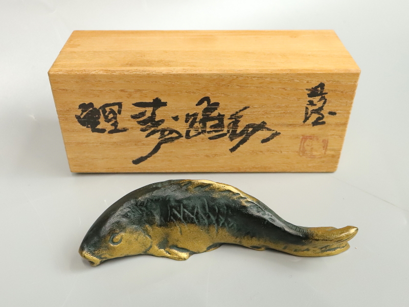 13047◆北村西望 「鯉寿躍動」 共箱 彫刻家 日本彫塑会名誉会長 文化勲章 文鎮 筆架 書道具 置物 收藏