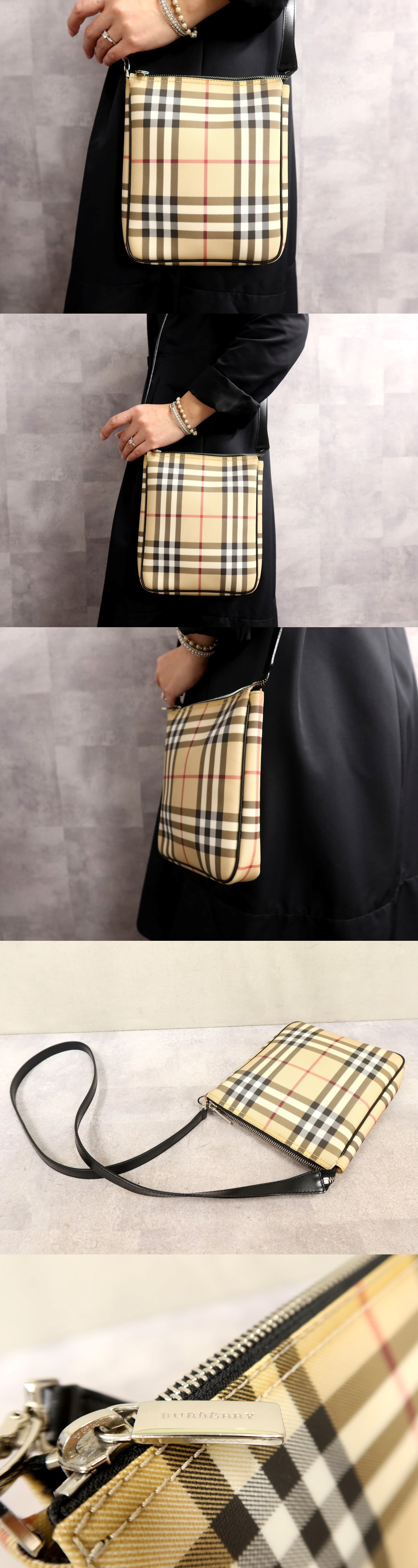 ●美品●BURBERRY バーバリー●ノバチェック●PVC カーフ レザー 本革●ショルダー バッグ●ベージュ 黒 赤 白●シルバー金具●Js66309 收藏