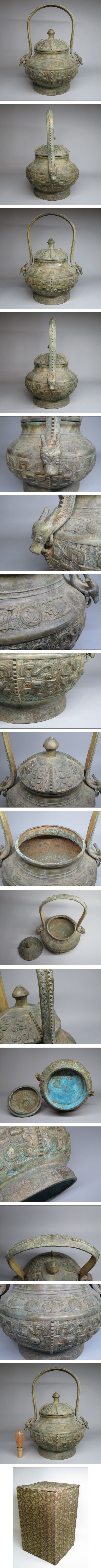 | 「都内コレクター所蔵品」 漢時代 青銅器 蓋物 提梁壺 酒器 箱付き 中国美術/古美術・骨董品 | ||