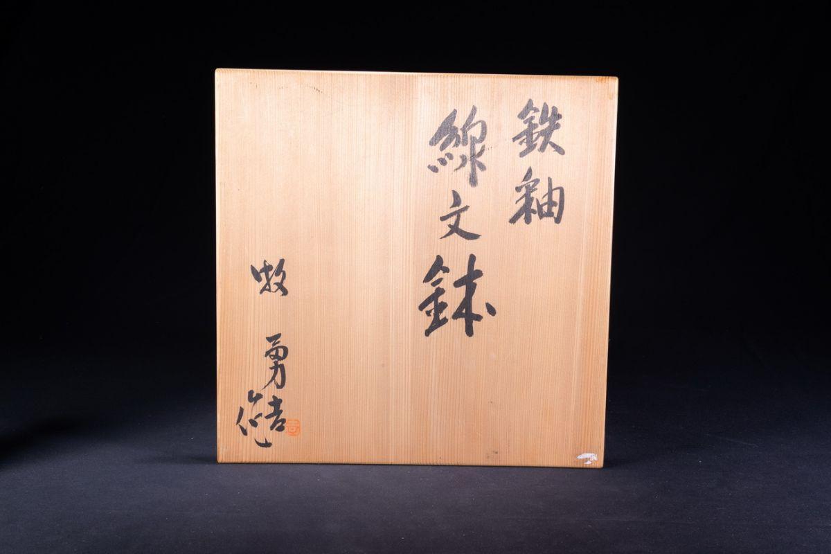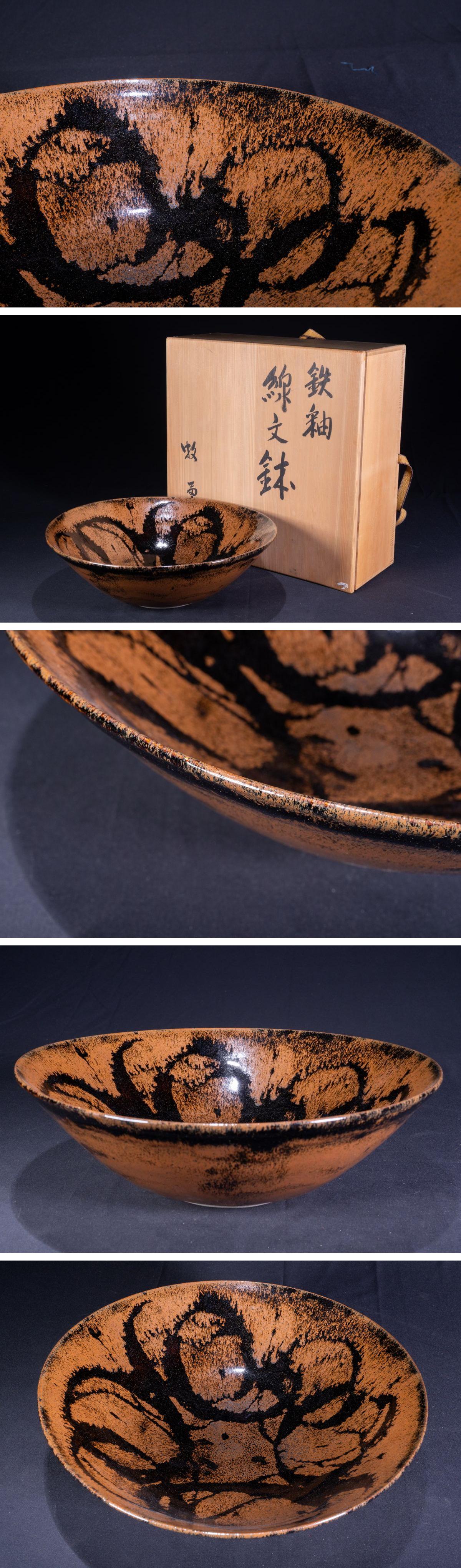 【珍品堂】1円から 鉄釉 線文鉢 牧勇 造 在銘 鉢 共箱 木箱 和食器 時代物 骨董品 古美術 径33cm N-A8C-1 收藏