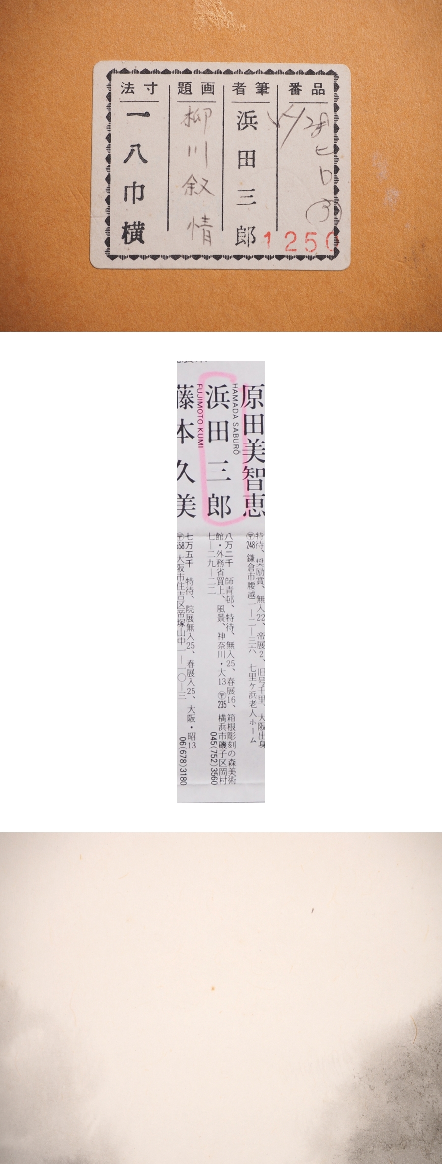 【真作】【渡鹿庵】[浜田三郎] 21812 掛軸 日本画 「柳川叙情」 共箱 二重箱 太巻 紙本 風景画 神奈川 師前田青邨 在銘 收藏