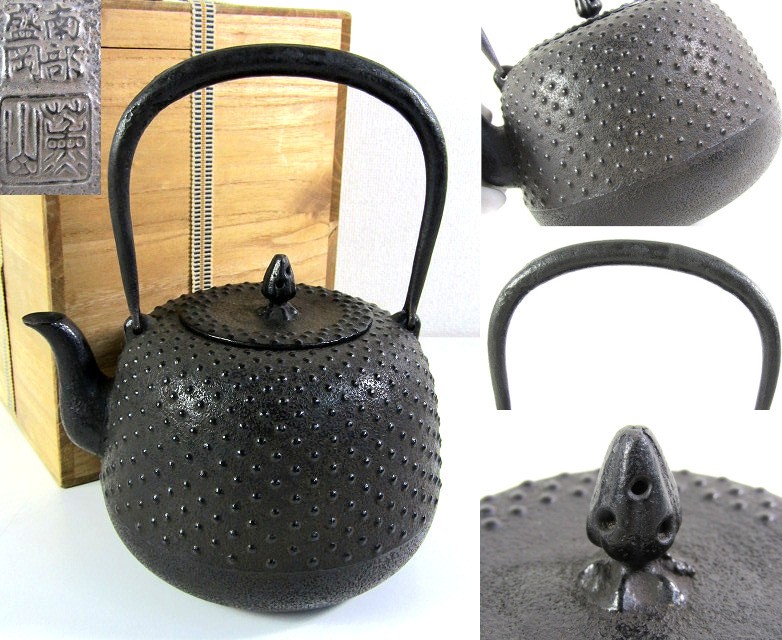 未使用 南部鉄器 薫山 あられ 鉄瓶 共箱 重さ:1756g【説明欄に詳細写真有り】の出品です。