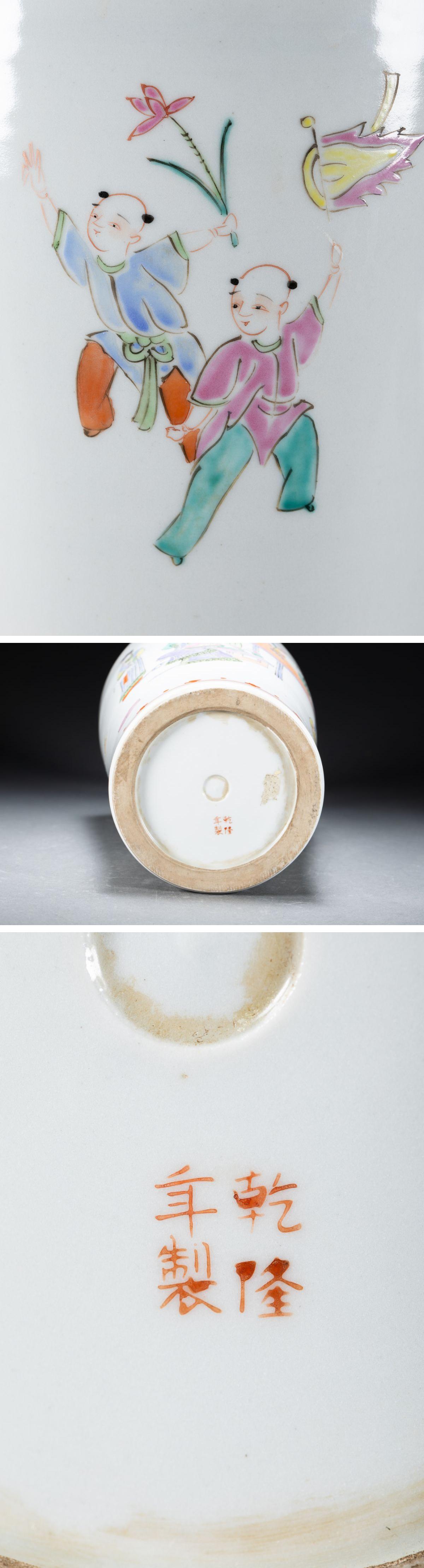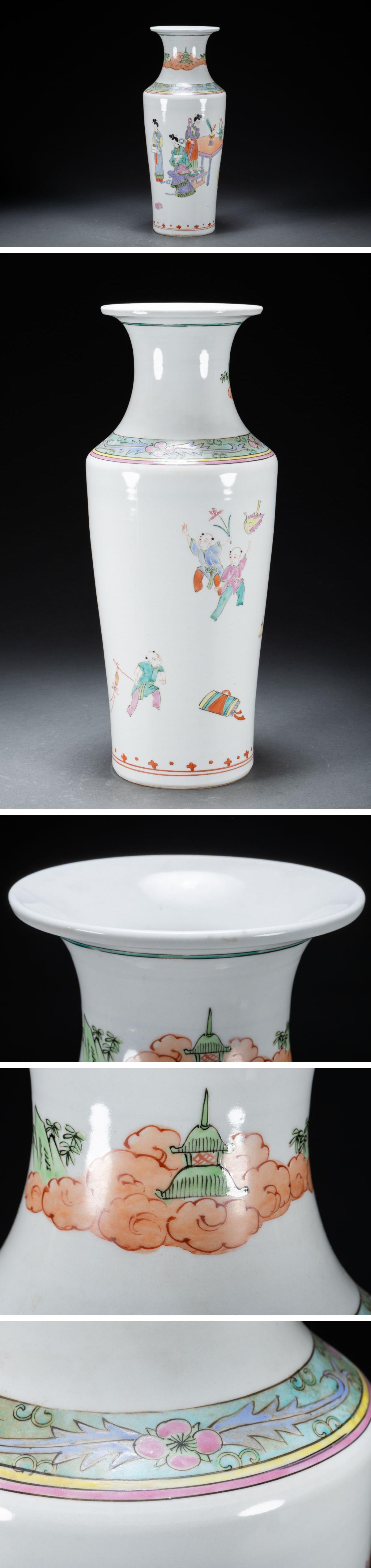 【雲錦】1円から 時代物 中国伝来 乾隆年製 五彩美人圖花瓶 花入 花生 時代物保証 古美術 骨董品7G5-456S07