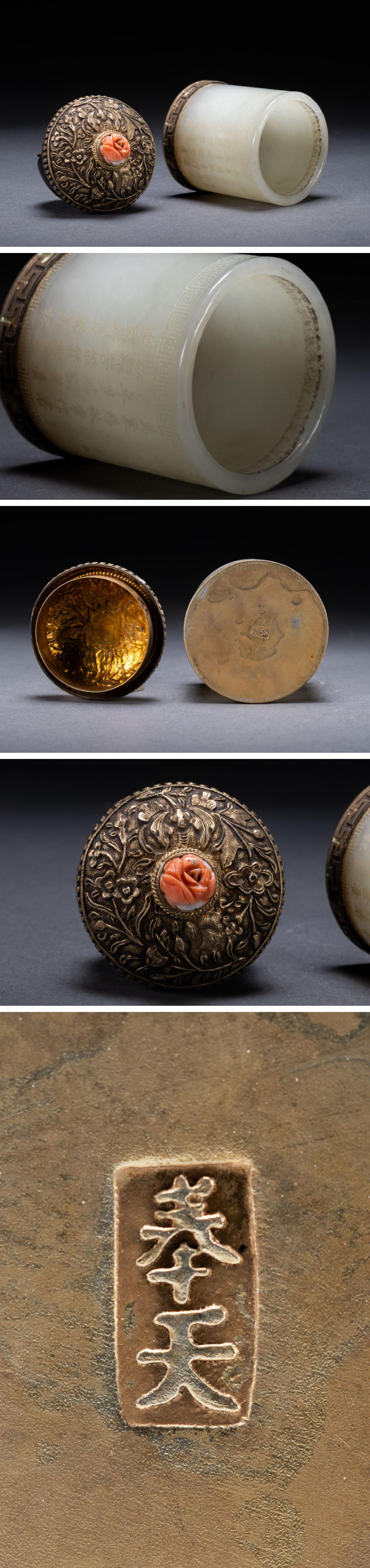 【雲錦】1円から 清時代 中国伝来 和田玉 漢詩文香合 古茶煎道具 材質保証 古美術 骨董品73S01-465S5 收藏