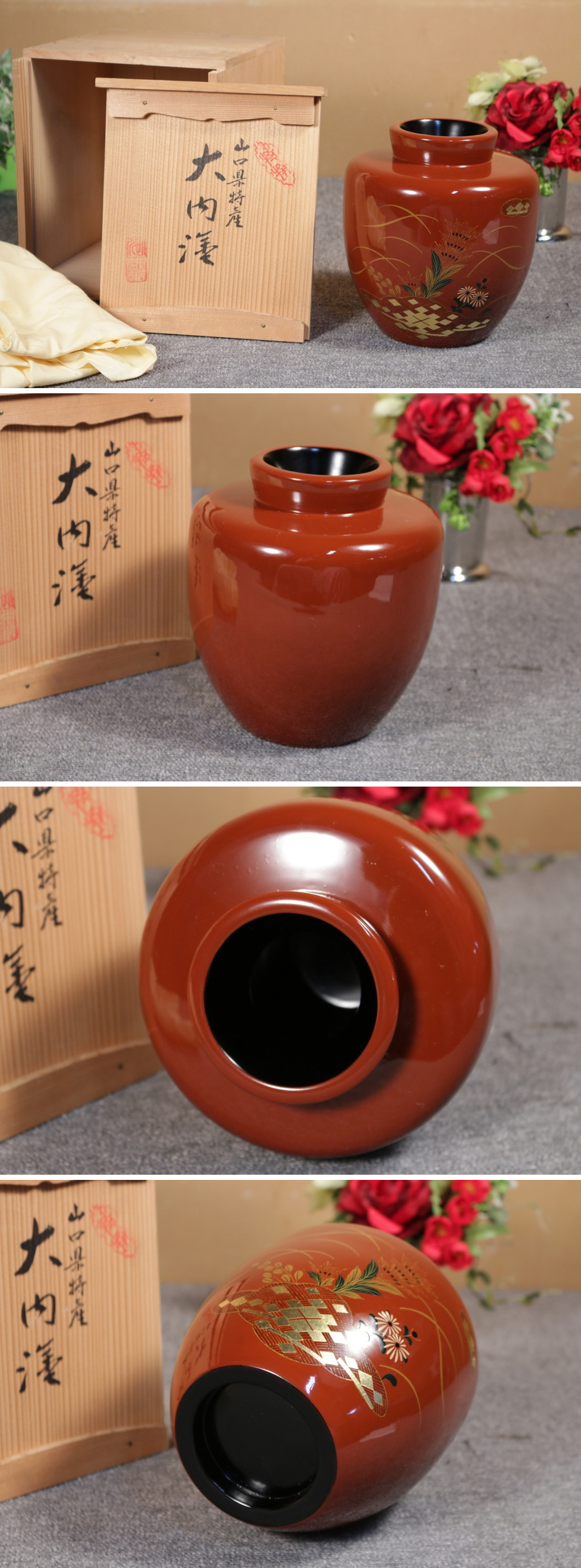 | 山口県特産大内塗花器 花瓶 茶道具 美品 付属:本体、紙箱 外寸:高180×横160×奥160mm