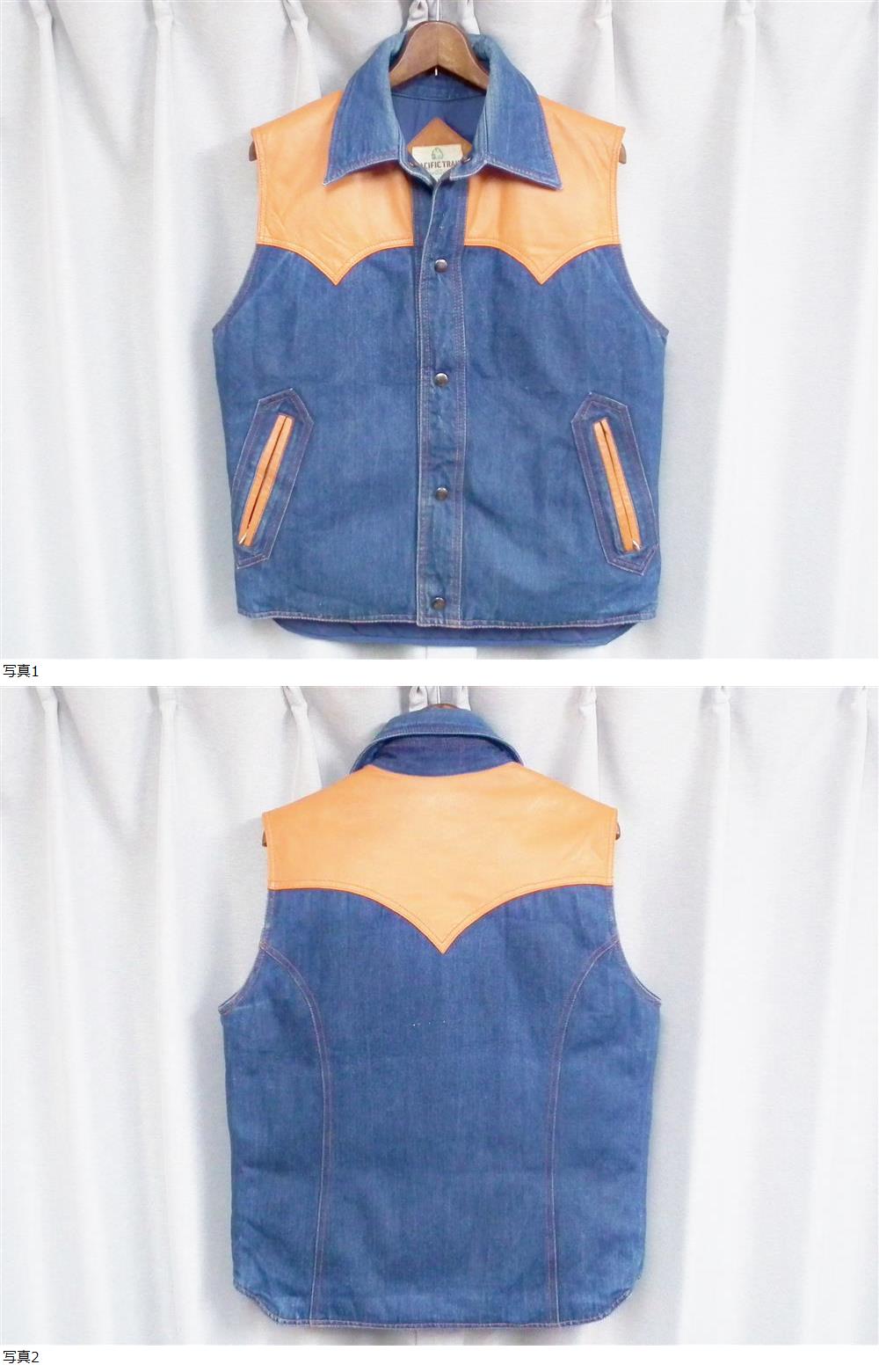 ◆80s ヴィンテージ◆PACIFIC TRAIL パシフィックトレイル デニム ダウンベスト レザー 切替 ウエスタンヨーク 90s ヘビーデューティ FJ 收藏