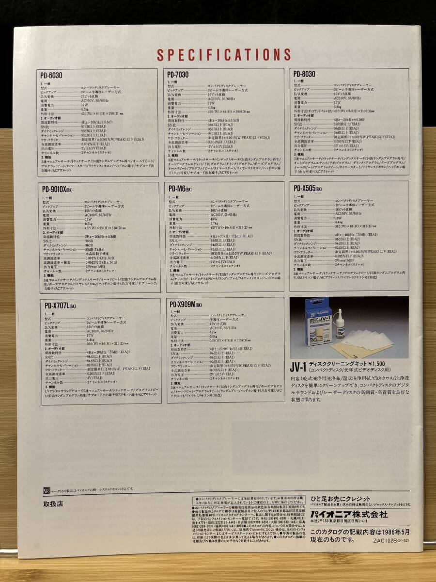 【407カタログ】パイオニア コンパクトディスクプレーヤー 1986年5月