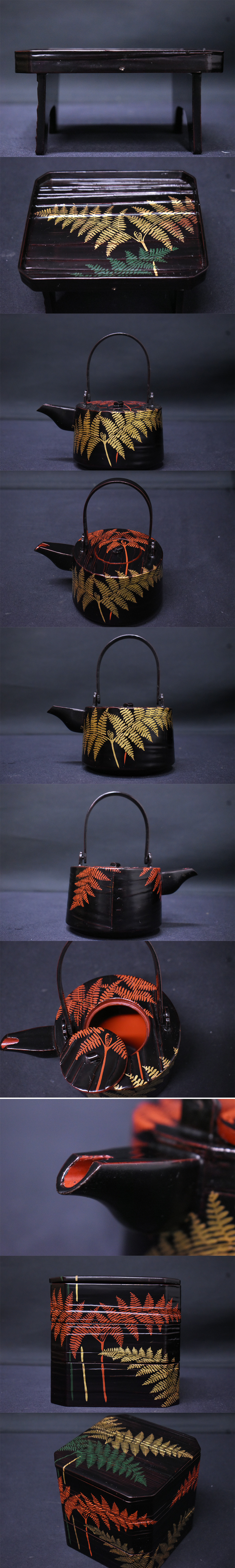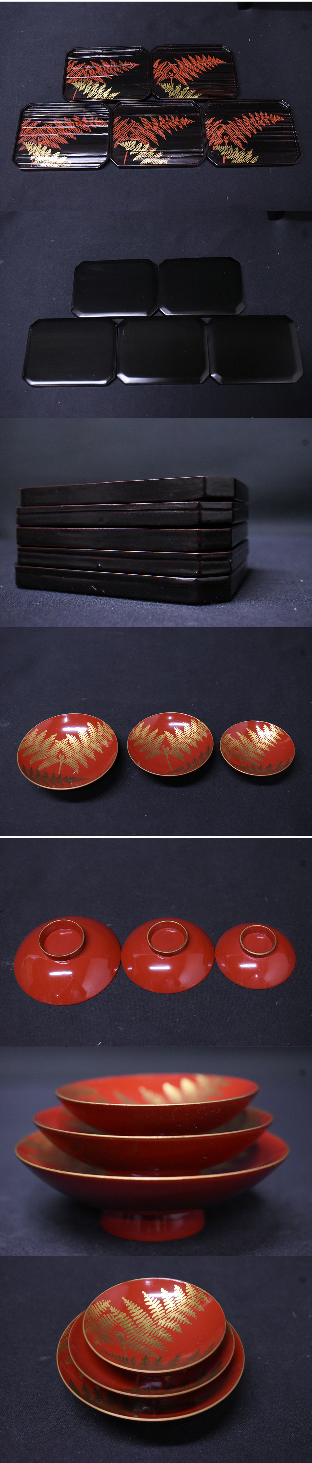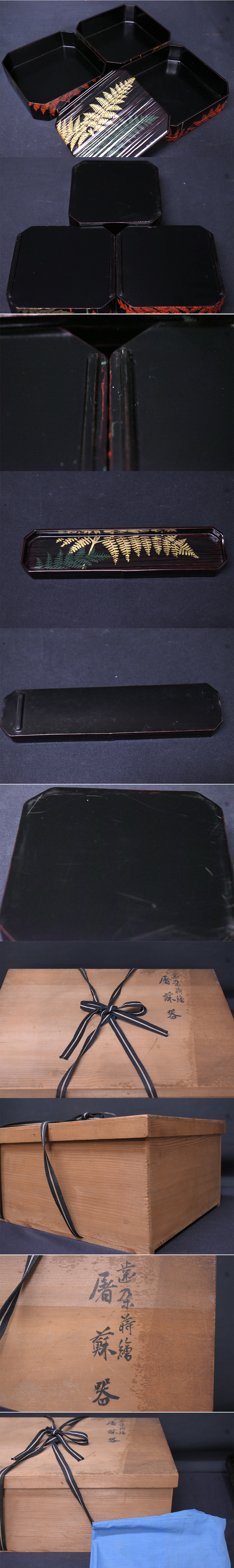 ●平安揚光堂/屠蘇器/歯朶蒔繪/金彩/蒔絵/おとそ/七つ揃え/和食器/酒器/正月/重箱/セット/共箱/UXD321 收藏