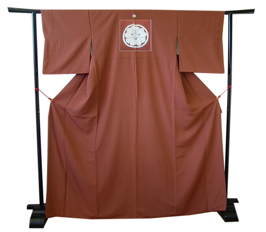 | 商品説明 | こちらのお品は「袷」ですので10月から5月までお召頂ければと思います。 しなやかで柔らかな手触りのぽってりとした着心地良い重めのちりめん地の生地、 紅鳶色地の無地着尺、 共八掛(正絹)、背には「丸に剣片喰」の紋1ヶ、幅広い年代の方にお召頂けます。 |